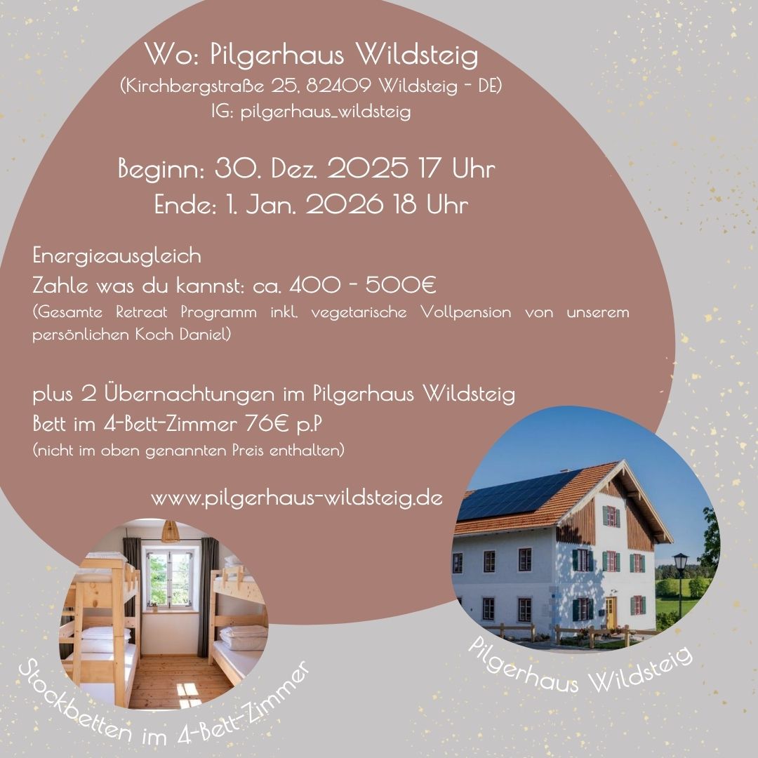Wir verbringen diese besondere Zeit im wunderschön restaurierten Pilgerhaus Wildsteig – ein ruhiger und achtsamer Ort in Oberbayern.