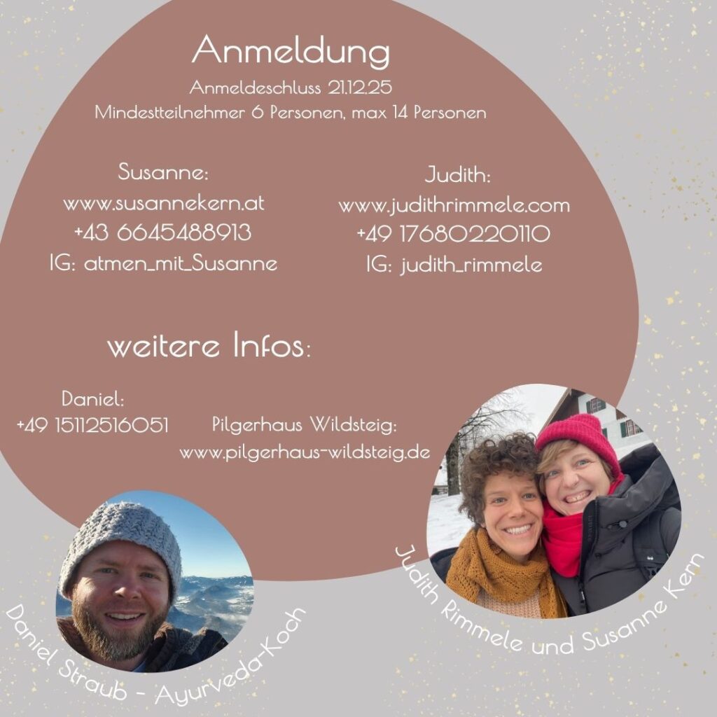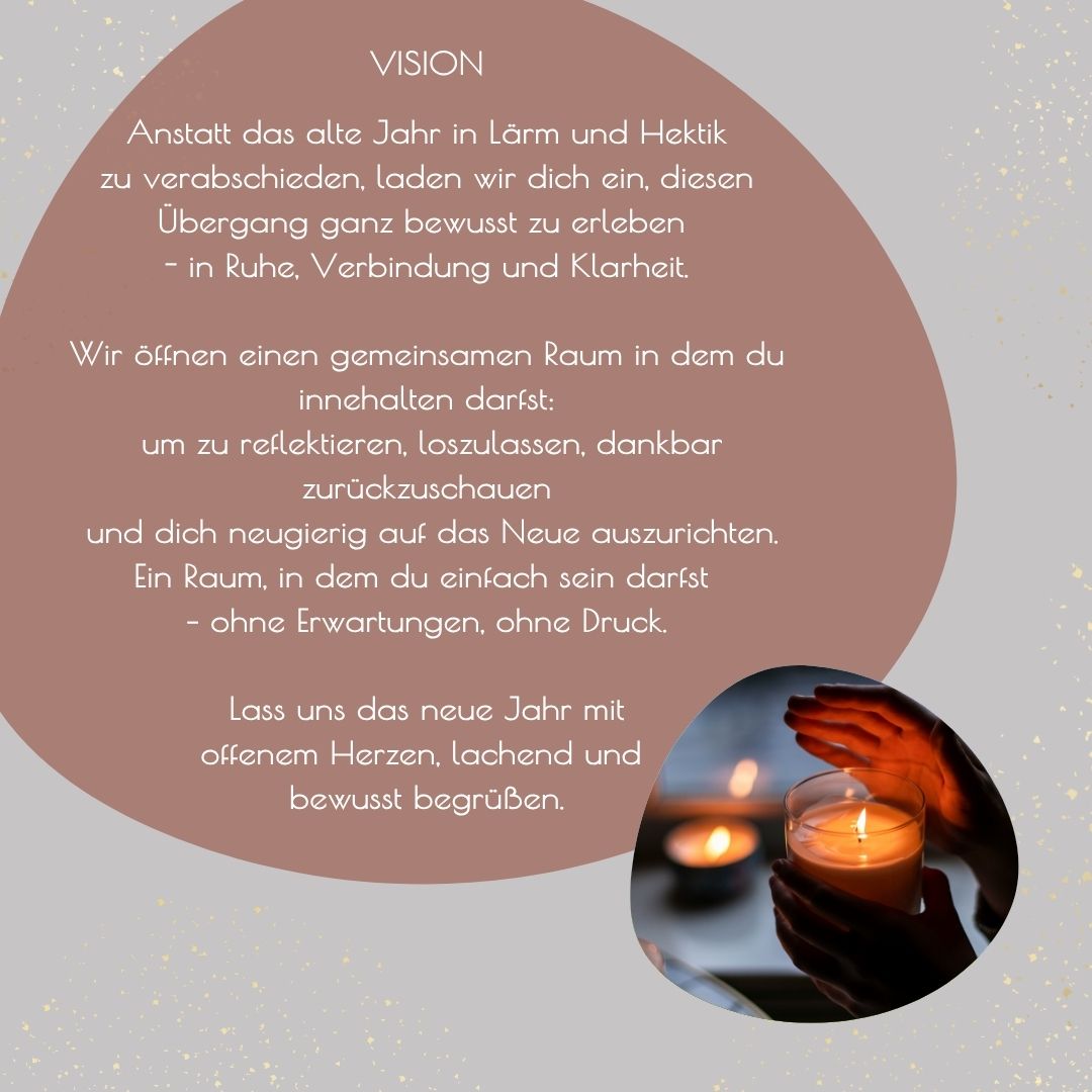 Gemeinsam mit dir möchten wir, Judith und ich, das alte Jahr liebevoll abschließen, loslassen, was gehen darf, und das neue Jahr mit Klarheit, Dankbarkeit und Leichtigkeit willkommen heißen.